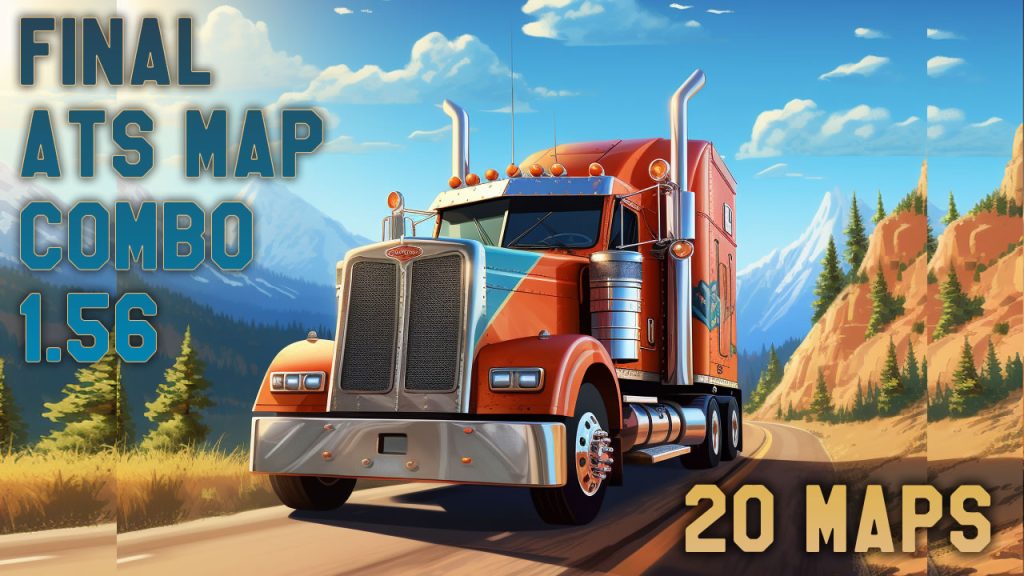 The final big map combo for ATS 1.56 with Coast to Coast, Promods Canada, ATS Expansion, More American Cities, Beyond, Sierra Nevada, Western Canada Expansion and other mods. Links below consist 20 maps and additions. Only Free mods.