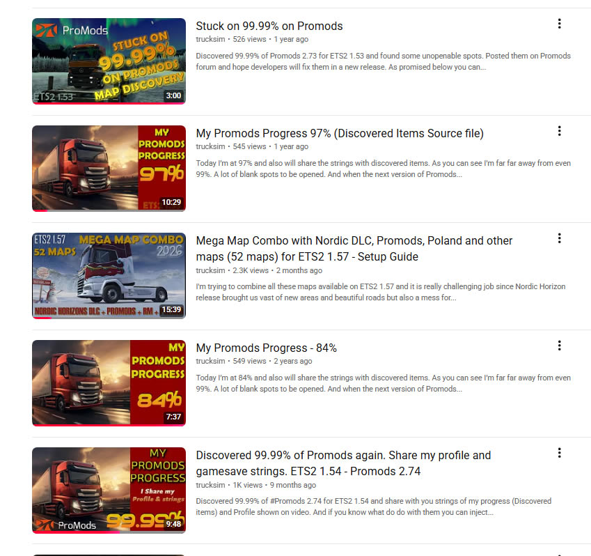 Strings of my progress (Discovered items) for Promods 2.78 (ETS2 1.58) version after the merge with Nordic Horizons and you know what to do with them you can inject them to your profile.