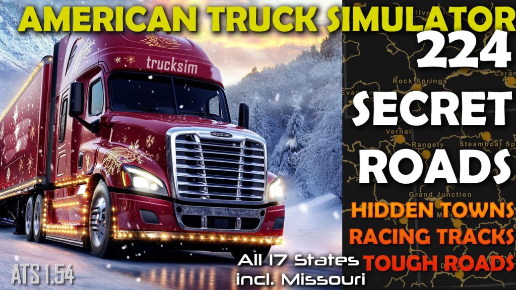 The guide contains 235+ hidden roads in 18 states (including Iowa DLC) on American Truck Simulator. It is actual for September 2025, on ATS 1.55.