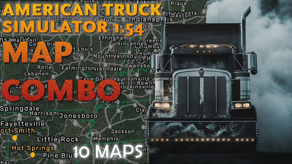 The big map combo for ATS 1.54 with Missouri DLC includes Coast to Coast, Promods Canada, Reforma, Beyond, Aleutian Islands, Sierra Nevada, EMMN, Yards and other mods. Links below consist 16 maps and additions. Only Free mods.